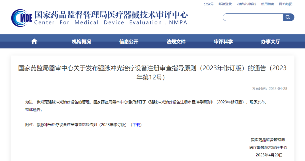 近日,國家藥監局器審中心在去年發布的征求意見稿基礎上正式發布《強脈衝光治療設備注冊審查指導原則》(2023年修訂版),我們將兩個文件進行了對比,除了部分用詞上的改動外,二者最大的區別在於產品注冊相關資料應符合即將實施的新標的相關要求。