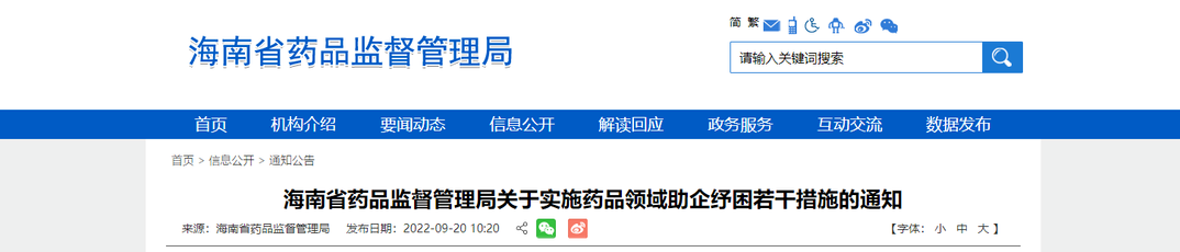 為深入貫徹落實省委、省政府關於穩住經濟大盤、助企紓困決策部署,全麵提升藥品領域監管效能,省藥監局結合監管實際,製定實施鼓勵研發創新、優化許可程序、提高審批效率、強化政企服務等若幹措施,促進生物醫藥企業健康快速發展。現將有關事項通知如下: