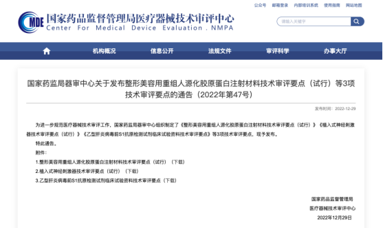 因內文展示有限,我們將本次發布的《整形美容用重組人源化膠原蛋白注射材料技術審評要點(試行)》以附件形式展示,大家可識別下方二維碼查看並下載備用。其他2項技術審評要點可點擊文末“閱讀原文”查看。