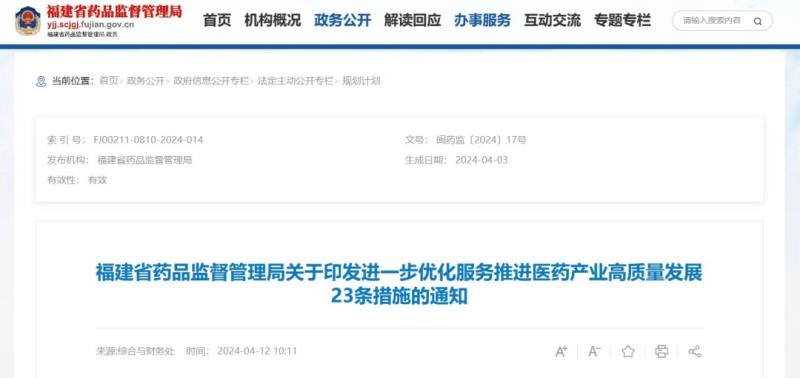 近日,福建省藥監局發布《進一步優化服務推進醫藥產業高質量發展23條措施》,以提高藥品、醫療器械、化妝品審評審批效率和服務水平,促進醫藥產業優化升級和高質量發展。