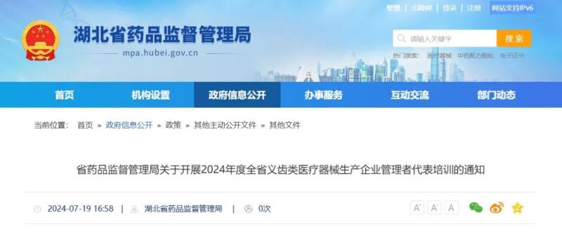 近日,湖北省藥監局發布《關於開展2024年度全省義齒類醫療器械生產企業管理者代表培訓的通知》,有關事項通知如下:
