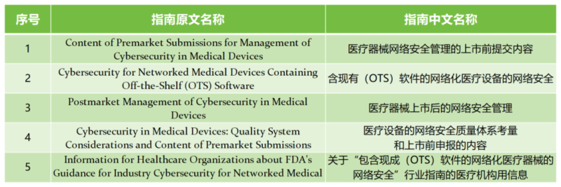 了解完需要遞交網絡安全文件的情形,我們整理了FDA發布的部分與網絡安全有關的(包括上市前和上市後)指南文件,以供大家參考: