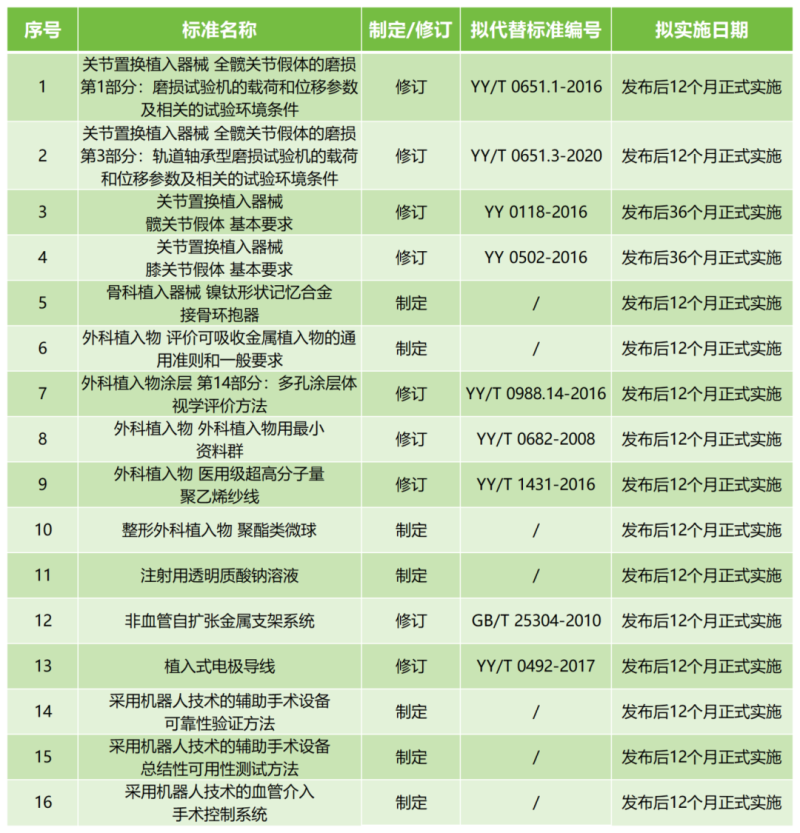 8月7日,國家藥監局醫療器械標準管理中心發布幾則關於征求醫療器械行業標準意見的通知,通知顯示,近期共有16項標準形成了征求意見稿,具體明細如下: