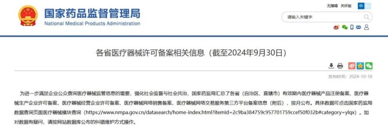 10月16日,國家藥監局公布了截至2024年9月30日各省有效期內醫療器械產品注冊備案、醫療器械生產企業許可備案等信息,老規矩,金飛鷹小編對此稍作編輯,標注紅色、綠色、黃色的分別為前三甲。