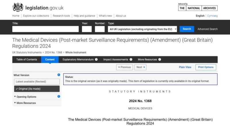 近日,英國MHRA發布The Medical Devices (Post-market Surveillance Requirements) (Amendment) (Great Britain) Regulations 2024,據介紹,這些法規條款是對2002年醫療器械法規(以下簡稱2002版法規)的修訂,以插入新的上市後監督要求。法規生效日期:2025年6月16日。