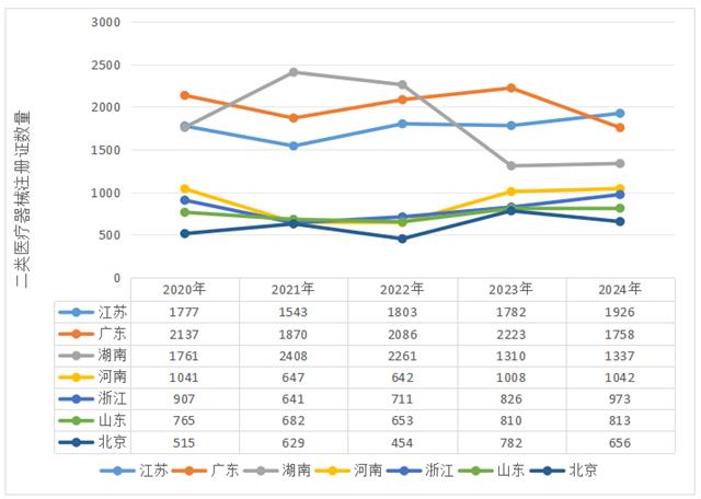 2024年,省藥監局新批準第二類醫療器械注冊證共1758個,與2023年相比,數量有所下降,居全國第二。
