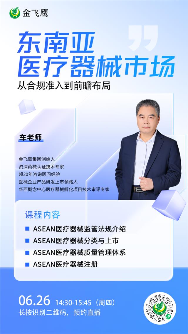 金飛鷹線上直播課【第127期】來啦 本次主題是東南亞醫療器械注冊相關內容