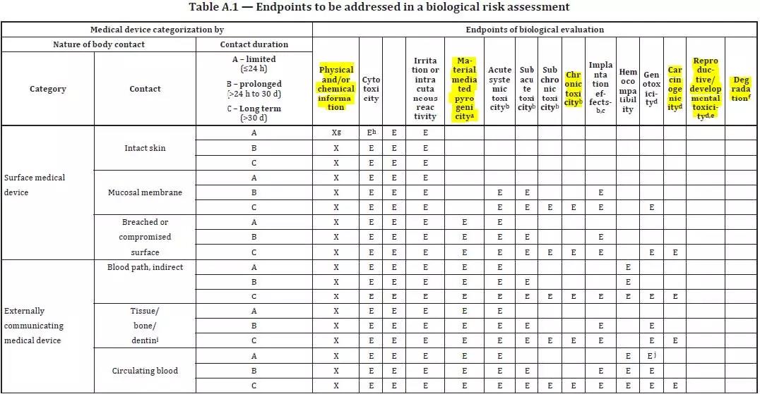 3) 增加了新的生物相容性試驗項目(如圖 3 標黃所示):材料介導熱原、慢毒、致癌、生殖毒和可降解