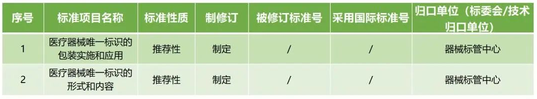 近期,國家藥監局發布2023年醫療器械行業標準製修訂計劃,其中就包括兩個醫療器械唯一標識標準,具體如下: