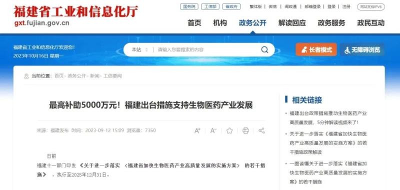 日前,福建省工業和信息化廳等十一部門印發《關於進一步落實<福建省加快生物醫藥產業高質量發展的實施方案>的若幹措施》(以下簡稱《若幹措施》),從壯大產業規模、加快創新服務平台建設、推動產業創新發展、優化創新產品服務、加大市場推廣應用、加強組織保障等六個方麵提出20條具體措施。執行至2025年12月31日。