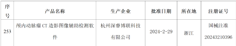 近日,國家藥品監督管理局正式批準了杭州深睿博聯科技有限公司研發的“顱內動脈瘤CT造影圖像輔助檢測軟件”注冊申請。該軟件包含瀏覽器端和服務器端兩部分,專為頭頸動脈CT血管造影圖像的顯示、處理、測量和分析設計,特別針對顱內3mm及以上的動脈瘤進行輔助檢測。