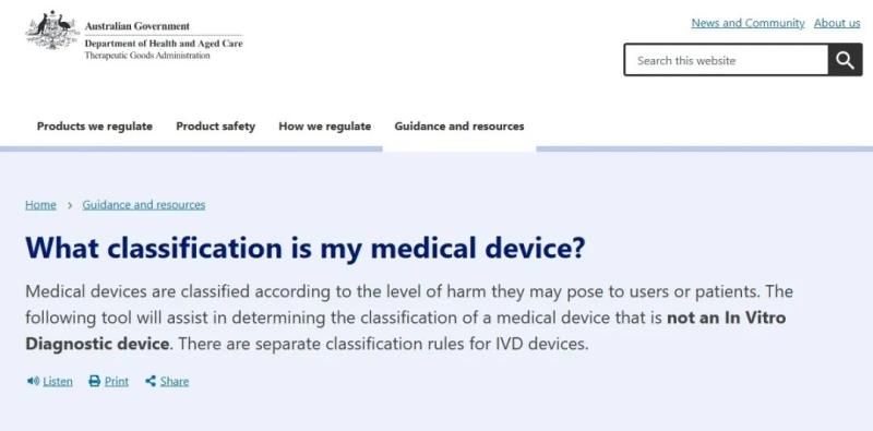 跟國內分類規則不同,澳大利亞TGA根據醫療器械風險等級從低到高,將醫療器械分為Ⅰ類、Ⅱa類、Ⅱb類、Ⅲ類,體外診斷試劑則分為1、2、3、4類。