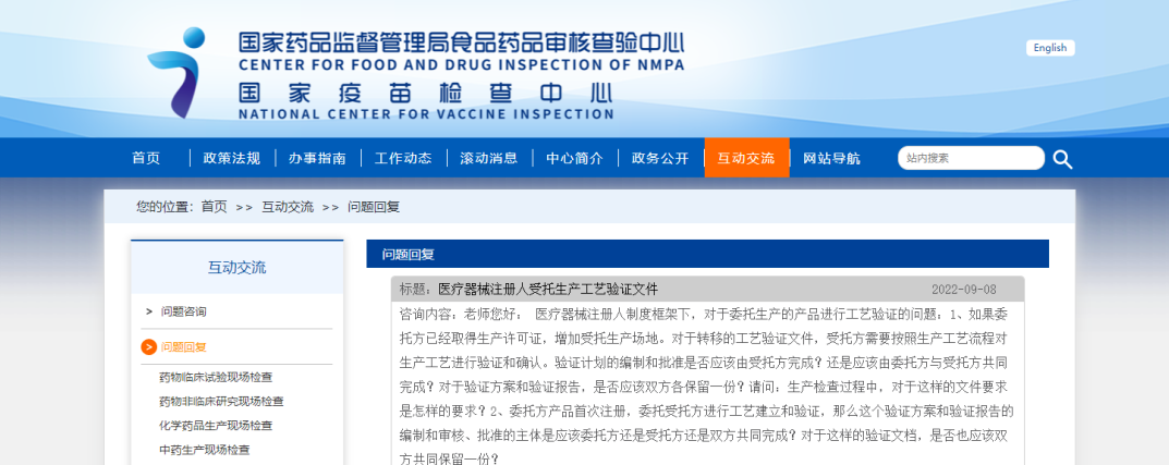 A:根據《醫療器械監督管理條例》規定要求,醫療器械注冊人、備案人和受托生產企業都應按照醫療器械生產質量管理規範,建立健全與所生產醫療器械相適應的質量管理體係並保證其有效運行。企業應按照《醫療器械監督管理條例》《醫療器械注冊管理辦法》、《醫療器械生產質量管理規範》《醫療器械委托生產質量協議編製指南》等法規要求,明確雙方職責,建立有效銜接的醫療器械生產質量管理體係,確保符合相關法律法規的要求。工藝驗證計劃驗證報告應該由委托方與受托方共同完成,以確保產品滿足已注冊的質量要求,驗證文檔的存檔問題,視企業情況而定,但建議雙方均保留存檔,以方便查看。