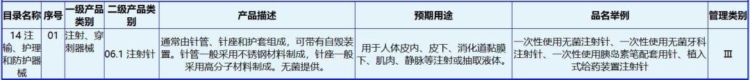 一次性使用無菌注射針在我國是較為成熟的產品,但鑒於其預期用途“用於人體皮內、皮下、消化道黏膜下、肌肉、靜脈等注射或抽取液體”,在我國是按照第三類醫療器械管理的,分類編碼14-01-06。而在醫美領域,用於麵部注射透明質酸鈉的注射針,跟普通注射針又有較大差異,常見形態有五針、九針等,本次取證產品為九針。
