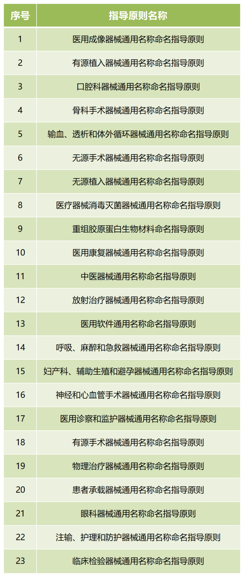 國家藥監局在2019年發布了《醫療器械通用名稱命名指導原則》,這是製定醫療器械通用名稱的基本技術要求,同時用於指導各專業領域的命名指導原則編製。而對於各專業領域存在的特殊情形,也有相應的命名指導原則進行具體說明。今天我們就彙總了物理治療器械、醫用康複器械、醫用軟件等23類醫療器械產品通用名稱命名指導原則,具體如下: