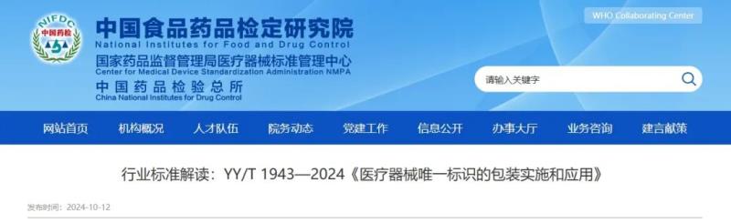 近日,中檢院官網發布了對行業標準YY/T 1943-2024《醫療器械唯一標識的包裝實施和應用》的解讀,我們將其轉載如下: