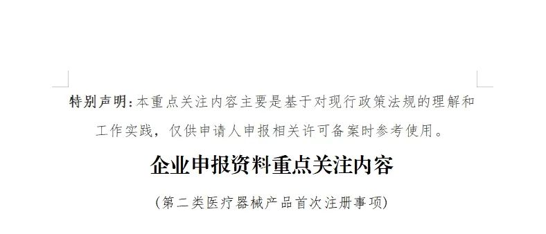 本期文章我們對安徽省藥監局列出的企業提交申報資料時應當重點關注的內容進行轉載,該局對注冊(含首次、延續及變更)申報資料的每一部分都列出了重點關注內容,其中第二類醫療器械首次注冊中的“監管信息”重點關注內容具體如下: