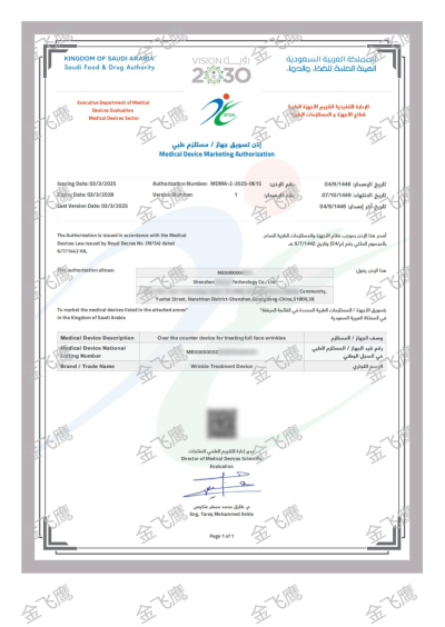 金飛鷹成功輔導深圳一家企業取得美容麵罩的沙特上市許可