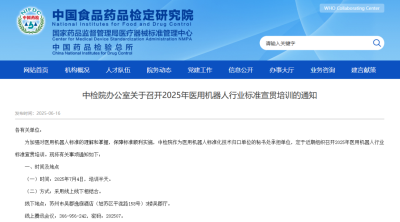 6月16日,中檢院發布一則有關醫用機器人行業標準宣貫培訓的通知,我們對培訓相關內容轉載如下: