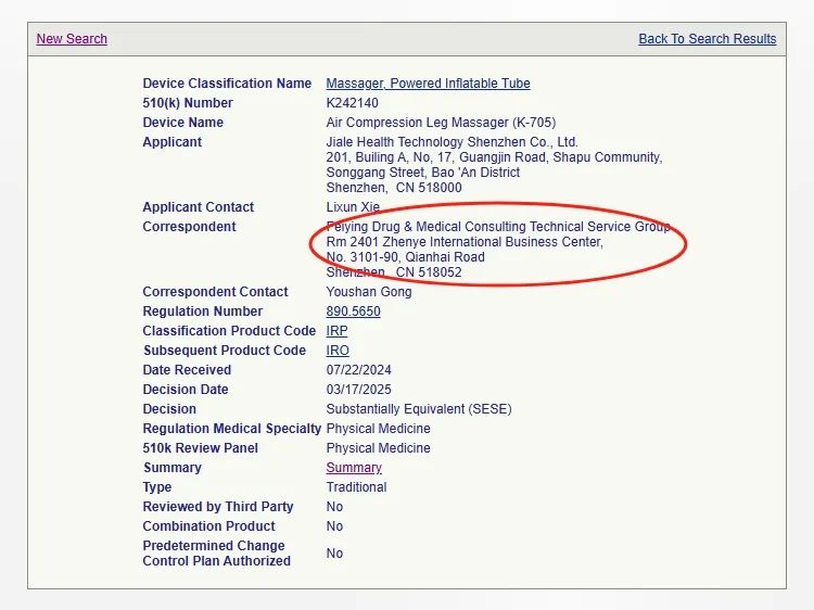 就在今年3月,我們成功輔導深圳一家企業獲批氣壓腿部按摩器的510(k):