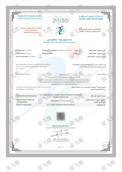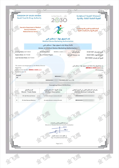 素有“中東土豪”之稱的沙特阿拉伯,雖然經濟規模和人均收入世界排名靠前,但卻是醫療器械產品極度依賴進口的一個國家。因此,近年來,沙特阿拉伯也是國內醫械企業“出海戰略的一個重要目標市場在脫毛儀沙特注冊領域,我們給大家展示7月26及27日新鮮出爐的兩張證,更多沙特注冊案例,可點擊右側文章美容麵罩沙特上市許可