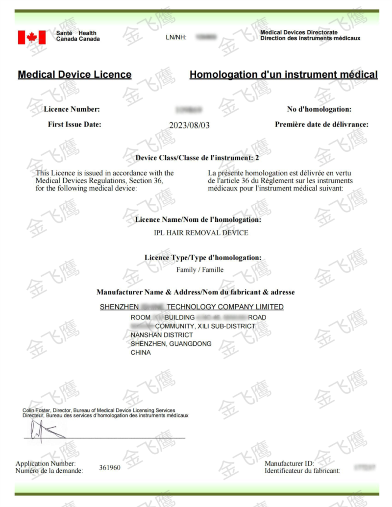 2023年,我們輔導的深圳一家企業成功取得脫毛儀的加拿大MDL證書,當時是按第二類醫療器械產品申請的,但值得注意的是,如今在加拿大,脫毛儀已被納入第三類醫療器械管理了。