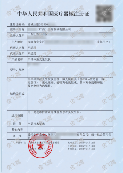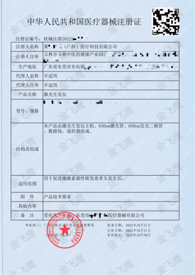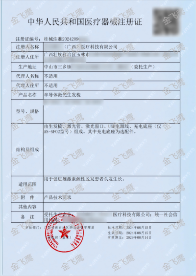 作為深耕醫療器械注冊領域18年的專業服務機構,金飛鷹在激光生發產品注冊領域已構建起覆蓋全球市場的完整服務能力。因此,繼前段時間分享激光生發儀510(k)案例後,本次我們繼續分享幾個國內典型注冊案例,以充分展現金飛鷹在全球多元化監管體係下的綜合服務能力與專業優勢。