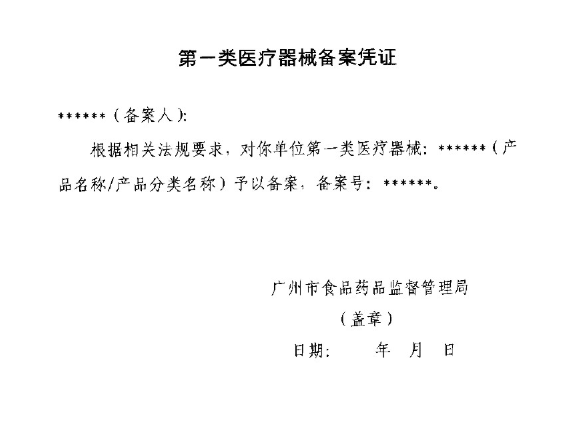 1、《第一類醫療器械備案補發表》 2、遺失情況說明 3、《南方日報》或者《廣州日報》上登載的遺失聲明原件及複印件 4、《第一類醫療器械備案憑證》及信息表 5、營業執照 6、符合性聲明 |